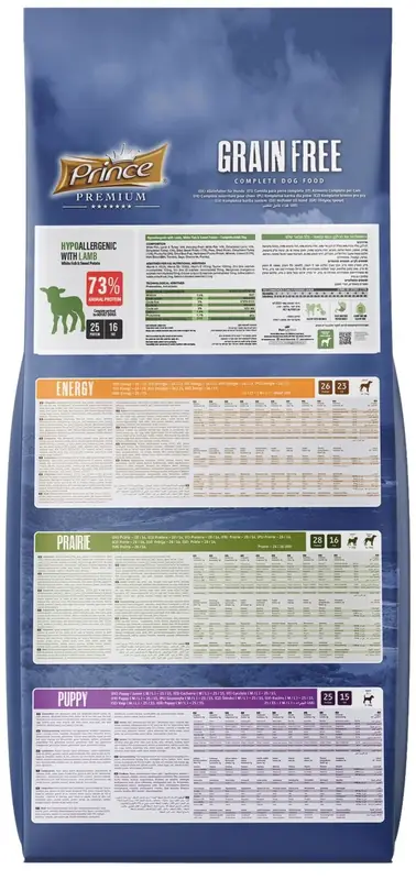 biela ryba, jahňacie a morčacie 34% ( biela ryba 14%, dehydrované jahňacie 10%, dehydrované morčacie 10%), sušené sladké zemiaky (17%), hrášok, sušené zemiaky, morčací tuk (9%), sušená repná dužina, hydrolyzované hydinové bielkoviny, minerálne látky, ľanové semienko (0,5%), zmes bylín (mäta, kurkuma, šalvia, harmanček, petržlen)